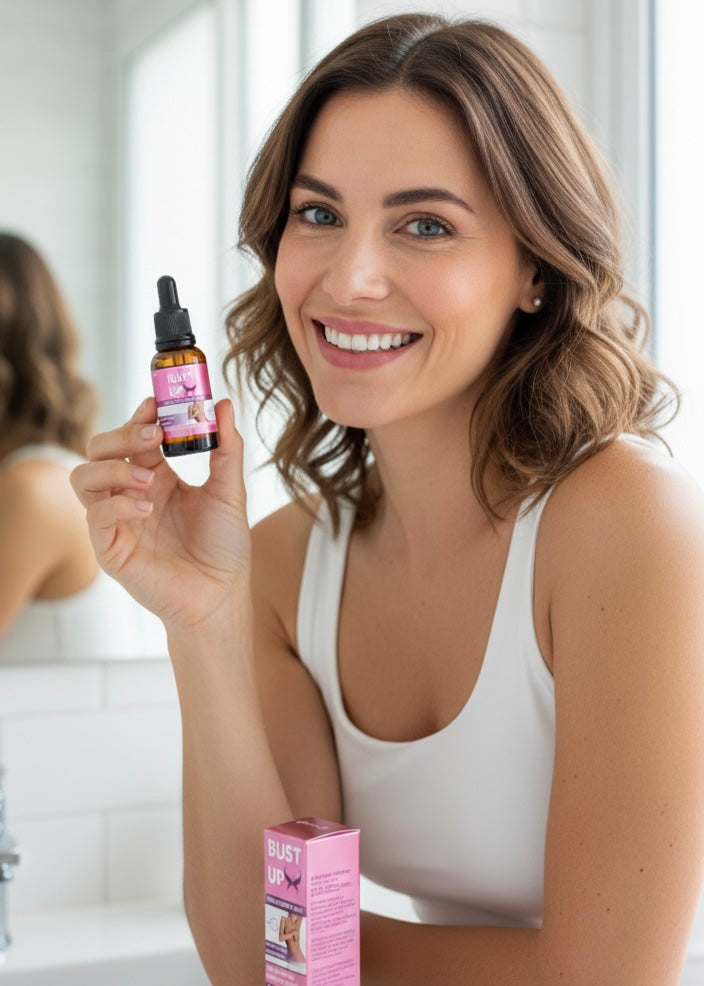 Con el uso regular, Bust Up fortalece los tejidos conectivos, mejora la circulación y tonifica la piel, evitando la caída natural por edad, embarazo o pérdida de peso. Pechos visiblemente más firmes, redondos y juveniles.