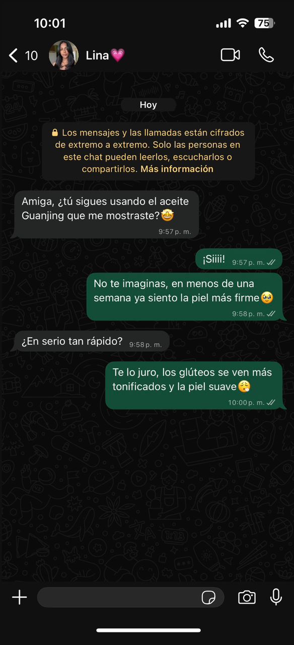 Llevo 2 semanas con el aceite y ÂĄla diferencia se nota! La piel se siente mĂĄs firme y suave. Lo recomiendo si buscas resultados reales sin gimnasio.
